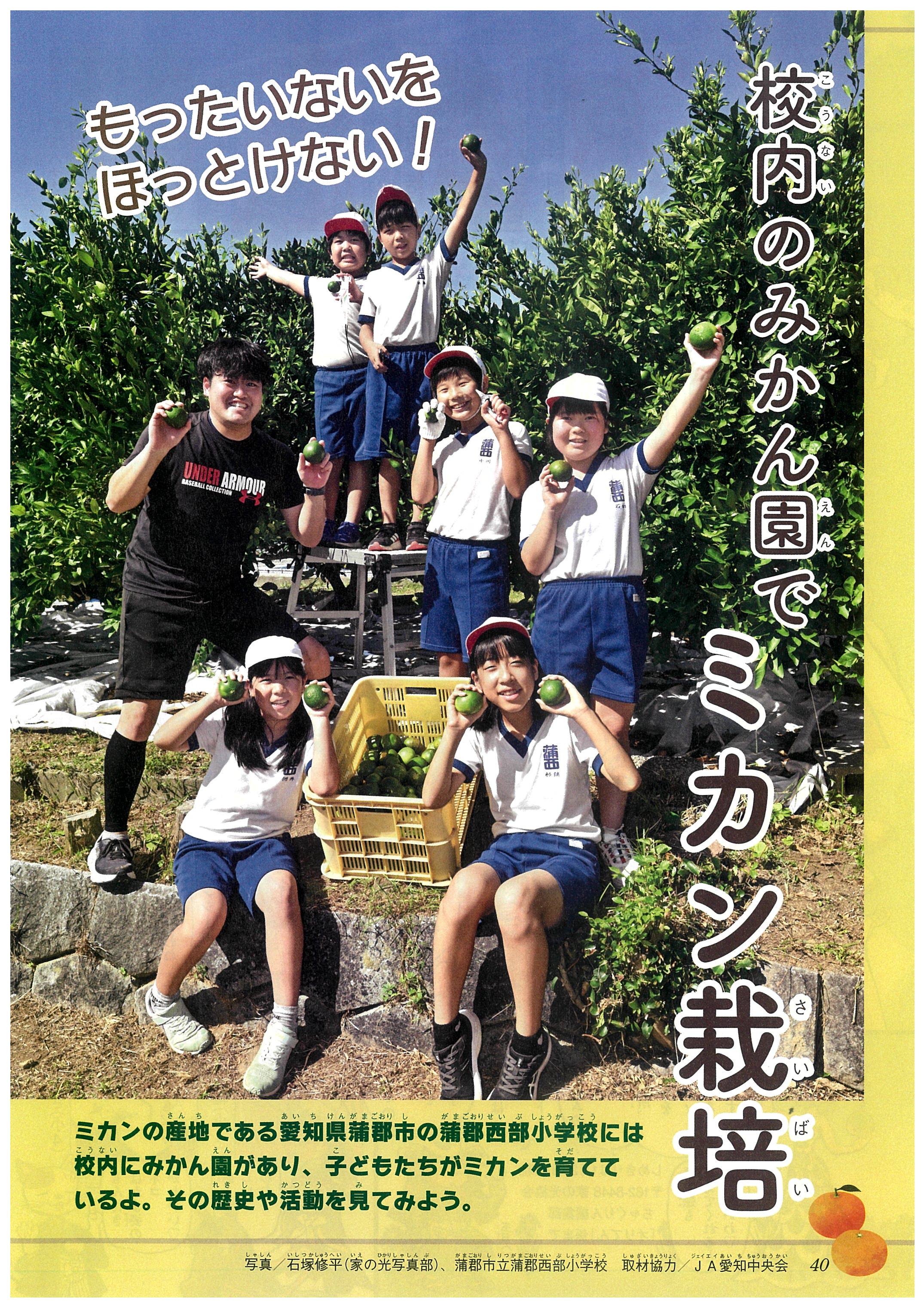 愛知県蒲郡市立蒲郡西部小学校では、約50年前から校内にあるみかん園で、子どもたちがミカン栽培を行っています。JA愛知中央会が開催した「第2回 あいち食農教育表彰」で最優秀賞を受賞した、その取り組み内容を5年生6人に密着取材して紹介しています。