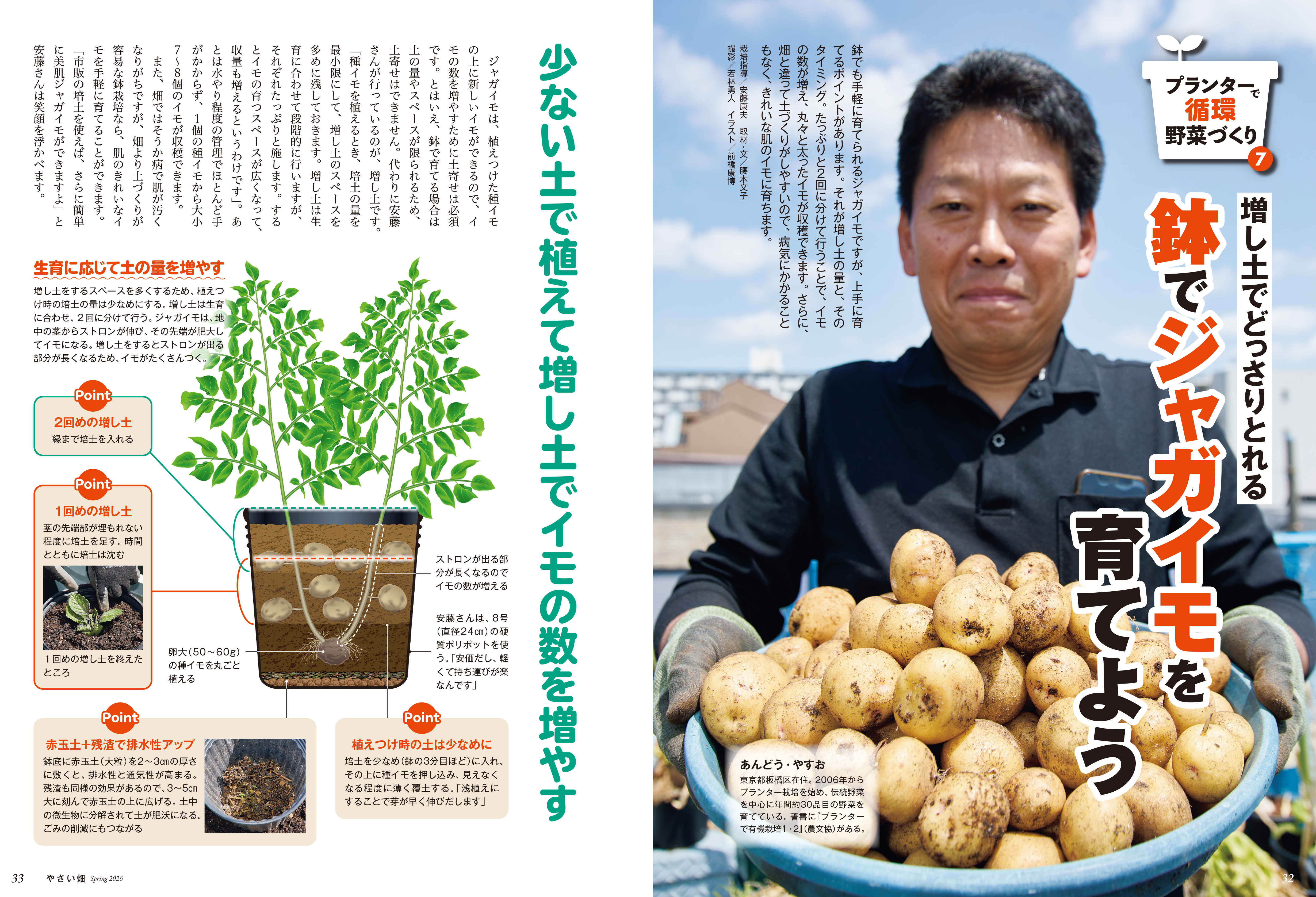 「ミニトマトのゆったり栽培」「ジャガイモの種イモは切るほどにお得に」ほか