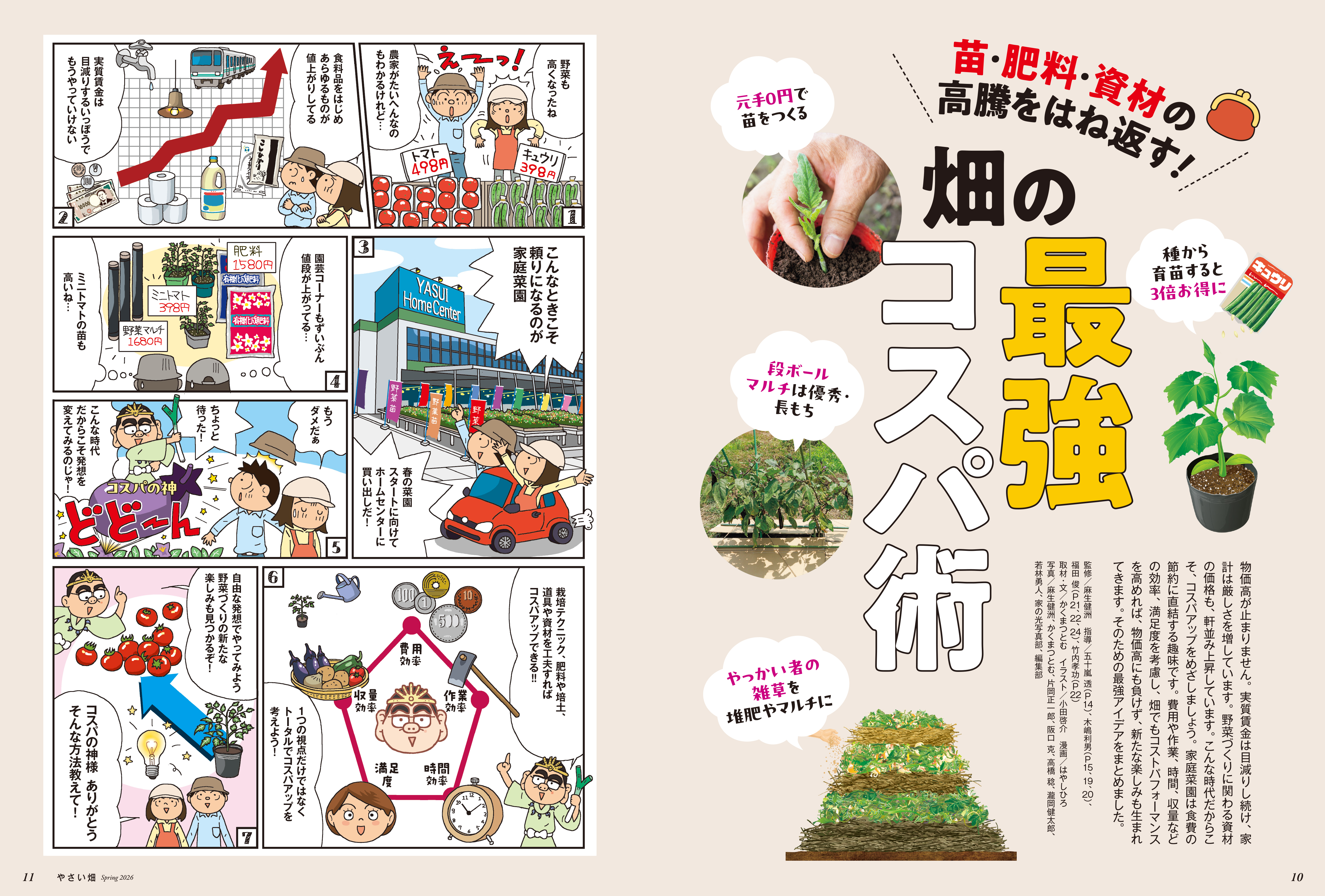 物価高が止まりません。生活用品だけでなく、野菜づくりにかかる資材の価格も軒並み上昇しています。だからこそ今、目指したいのが「コスパのよい家庭菜園」。家庭菜園は食費の節約につながる実益を備えた趣味です。費用や作業、時間、収量などの効率化、満足度を考慮し、畑全体のコストパフォーマンスを高めていけば、物価高にも負けることはなく、新たな楽しみも生まれてきます。そのための最強アイデアをまとめました。
